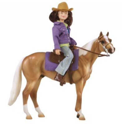 Perfect for the kid that wants to get started with their first Breyer collectible the Breyer Traditional Let's Go Riding Western Set features a fully tacked American Quarter Horse and smartly attired Western equestrian doll.